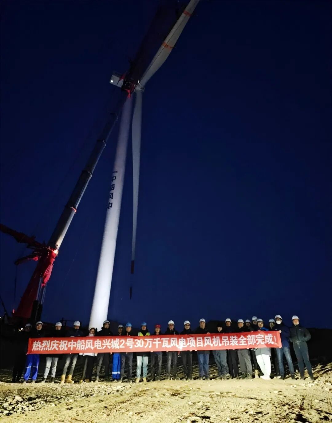12月15日,中船科技兴城2号30万千瓦风电项目现场传来喜讯,随着最后一台机组叶片与轮毂的精准对接,全场50台机组吊装任务就此圆满画上句号。这一关键节点的达成,为项目后续全容量并网发电按下了“加速键”。