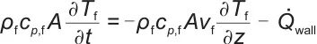 式中,ρf为工质的密度;cp,f为工质比热容;vf为工质在管内的体积流速;A为管道截面积;Tf为工质的温度;Q̇wall为工质与相变材料之间的换热速率。