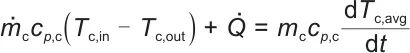 式中,cp,h和cp,c分别为换热器热侧和冷侧流体的比热容;Th,in、Th,out、Tc,in和Tc,out分别为换热器热侧入口温度、热侧出口温度、冷侧入口温度和冷侧出口温度;Q̇为换热器的换热速率;mh和mc分别为换热器热侧和冷侧流体的质量;Th,avg和Tc,avg分别为热侧和冷侧流体的平均温度。