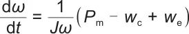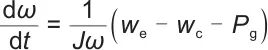 式中,ω为转子角速度;J为转子转动惯量;Pm为储能过程输入电功率;Pg为释能过程输出电功率。