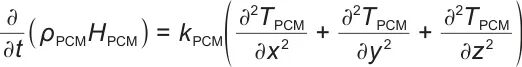 式中,ρPCM和kPCM分别为相变材料的密度和热导率;TPCM和HPCM分别为相变材料的温度和焓。