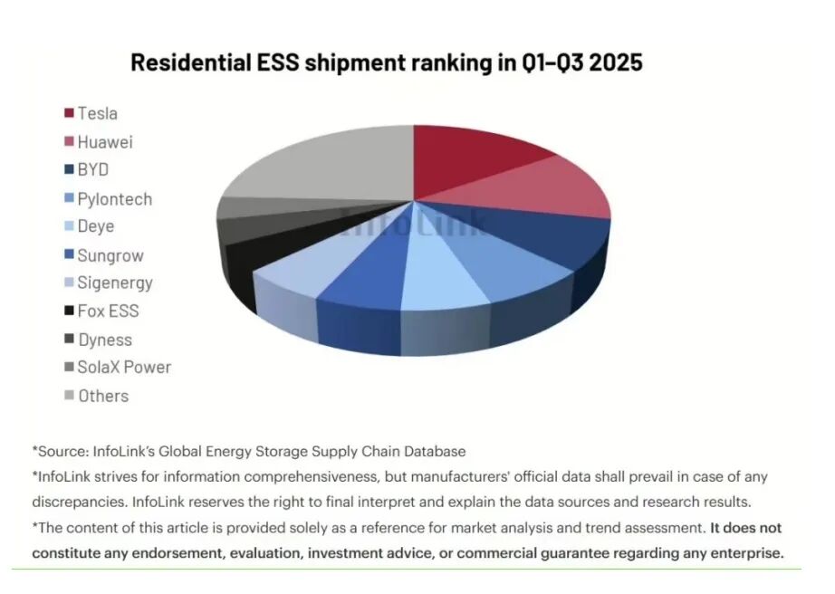 图2 2025年前三季度全球住宅电池储能系统出货量
