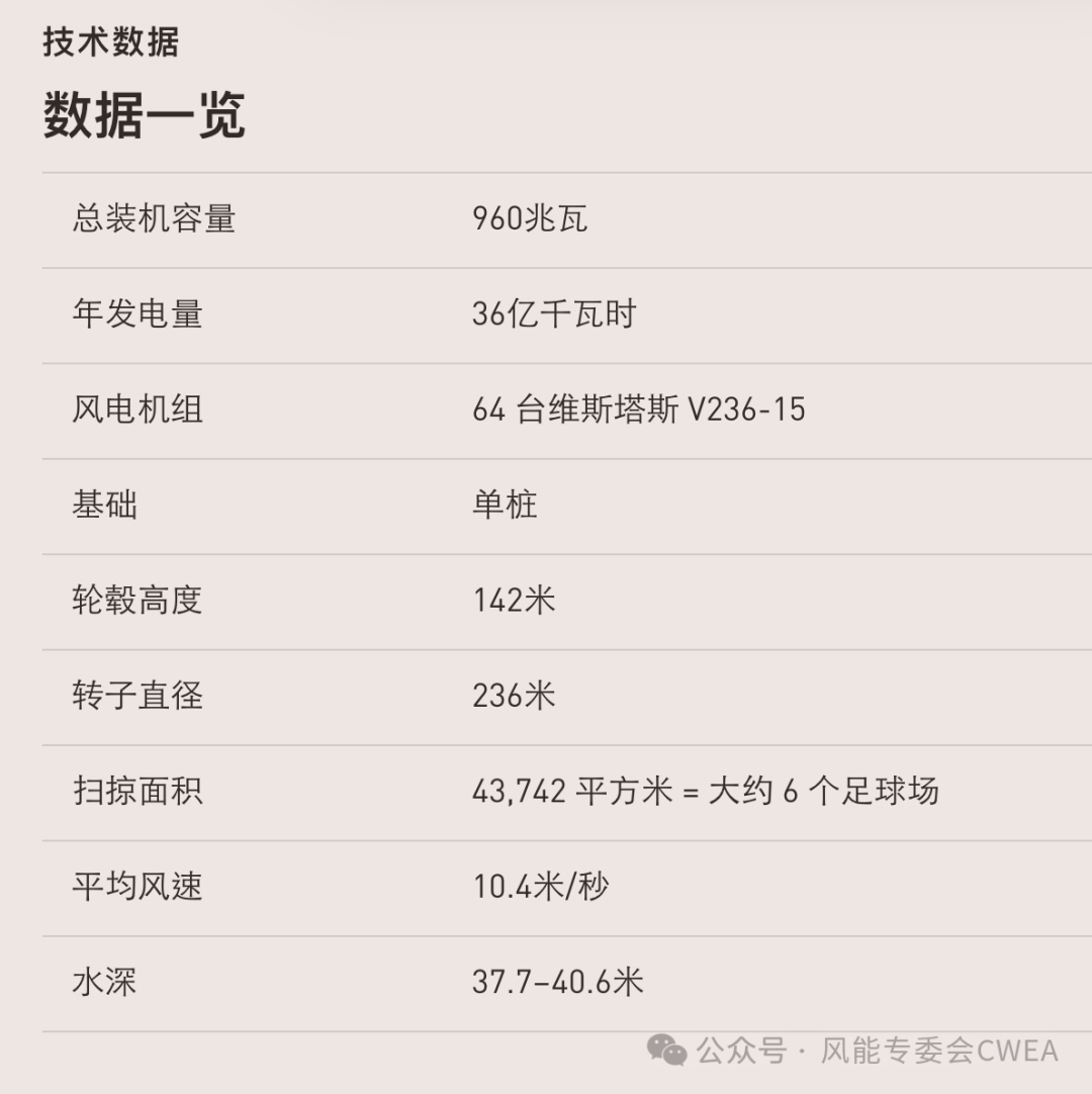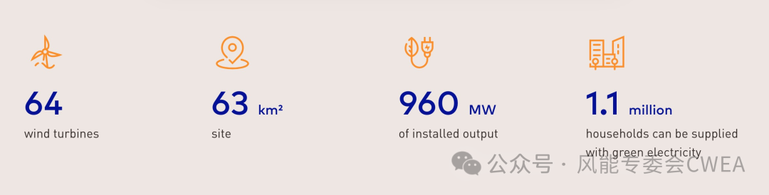 项目总共需要安装 64 台15MW维斯塔斯风电机组,截至目前已有 27 台机组安装完毕,预计所有机组将于 2026 年夏季投入使用。