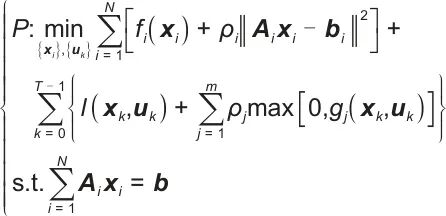 分布式优化框架基于一种改进的交替方向多乘子分解协调方法,该方法将全局问题转化为N个储能单元的局部优化子问题: