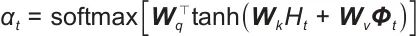 表示注意力权重,