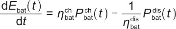 表示时刻t电池的放电功率;dEbat(t)/dt表示电池能量Ebat(t)随时间t的变化率,即能量的动态变化速率,由充电、放电功率及效率共同决定。