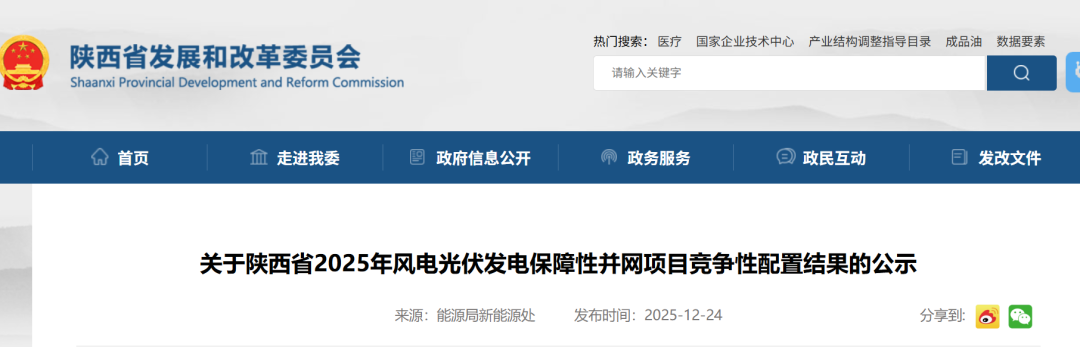 现将2025年陕西省风电、光伏发电保障性并网项目竞争性配置结果进行公示。公示时间为2025年12月24日至2025年12月30日,如有异议,请在公示期内以书面形式实名反映。