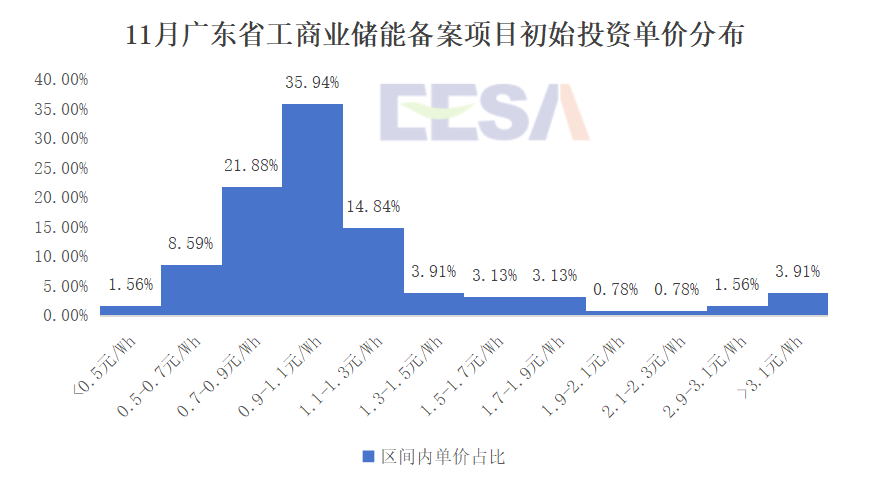 在成本层面,广东11月工商业储能项目初始投资单价集中于0.7~1.1元/Wh 区间,成本中枢已基本稳定,为中小规模工商业储能项目持续放量提供了现实基础。
