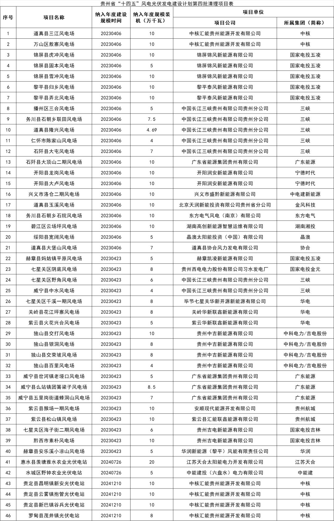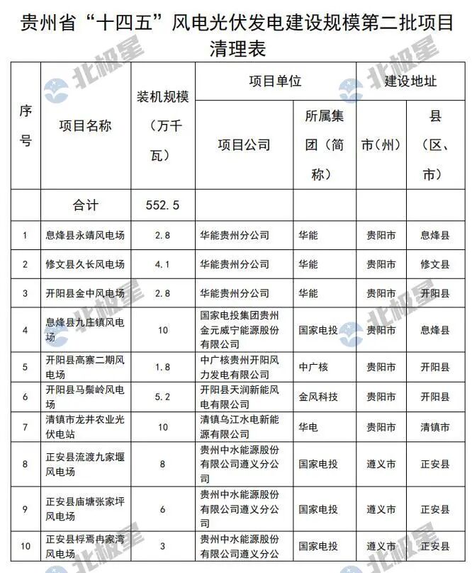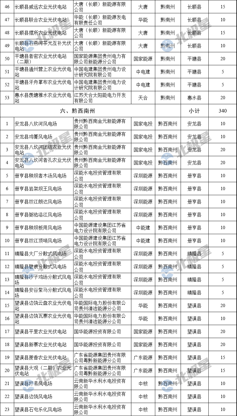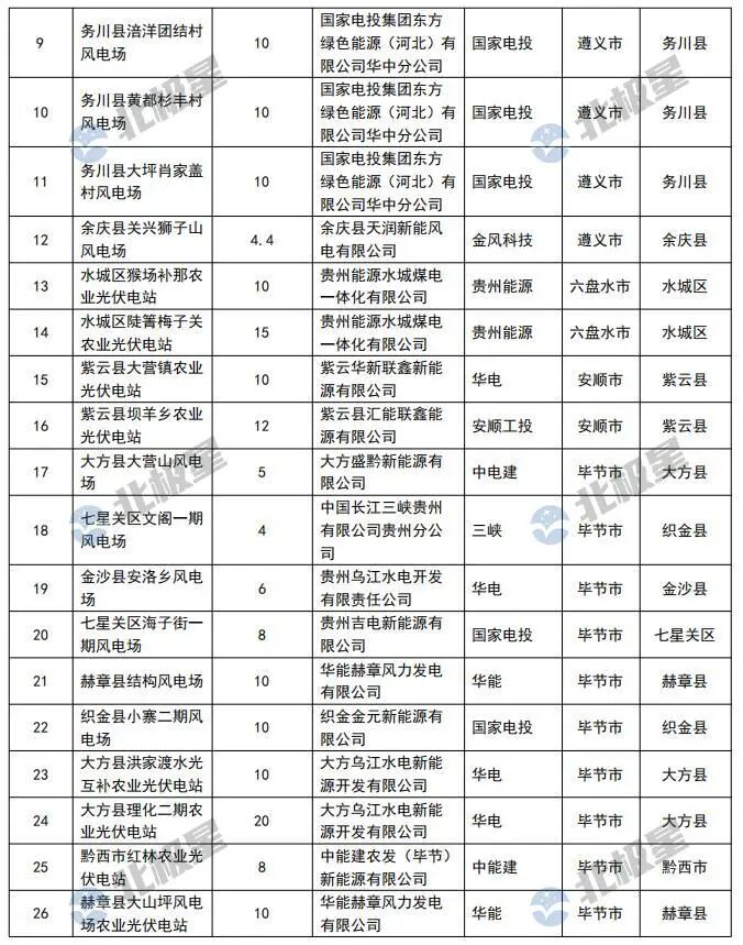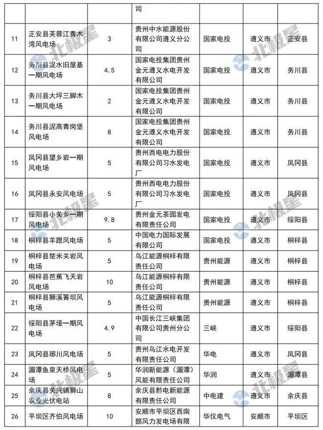 贵州省“十四五”风电光伏发电建设计划第四批清理项目表