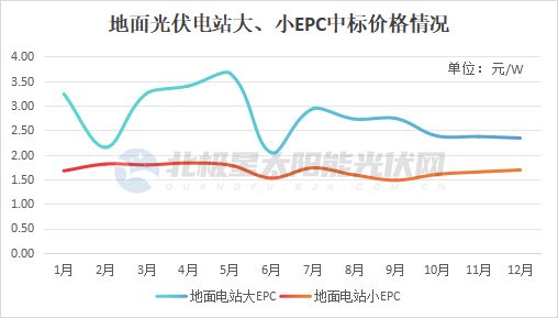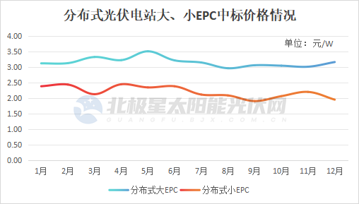 分布式光伏项目小EPC中标均价至2.3元/W,同比小幅下降0.02%。其中,最高中标价3.95元/W,项目为北京星海产业园1幢等5幢屋顶18MW分布式光伏项目EPC工程总承包,组件甲供。
