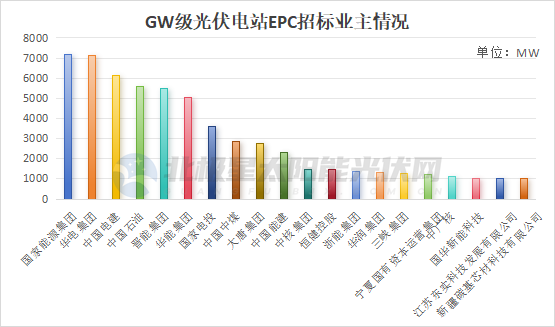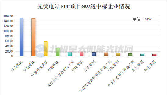 在已公布中标规模的项目业主中,中国电建、中国能建两大集团作为电力工程EPC建设的主力军,凭借旗下多家子公司共同发力,累计斩获光伏EPC项目超30.1GW。中国建筑集团、中国铁建旗下子公司分别拿下超5.9GW、3.26GW项目;长江设计集团、中核集团亦通过旗下单位获得GW级以上规模。