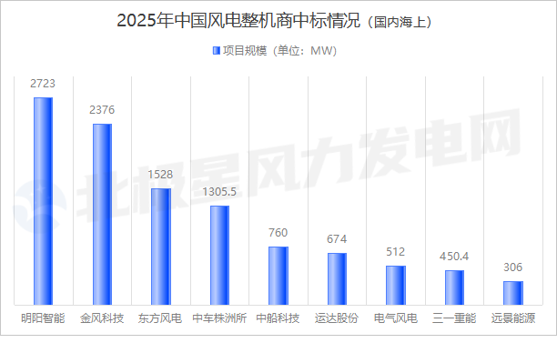 从总量上来看,金风科技、远景能源、明阳智能位列2025年中国风电整机商市场前三名。