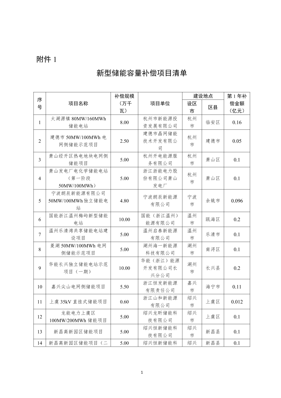 为贯彻落实省发展改革委 省能源局《关于印发〈新型储能容量补偿资金分配方案〉的通知》(浙发改能源〔2024〕111号)文件精神,经前期申报、审核、公示等流程,现将新型储能容量补偿项目清单(附件1)印发给你们,有关事项通知如下。