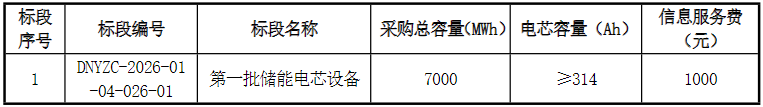 北极星储能网讯:2026年1月4日,国家电投发布2026年度第一批储能系统和第一批储能电芯设备集采招标,其中采购储能系统共5GWh,分别包含集中式储能系统4.5GWh、组串式储能系统0.5GWh;采购储能电芯共7GWh,要求电芯容量≥314Ah。
