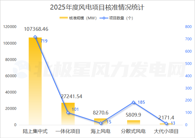 2025年我国获核准/备案陆上集中式风电项目719个,总规模107368.46MW,占据年度核准总量的70%,是完成新能源装机目标的关键力量。