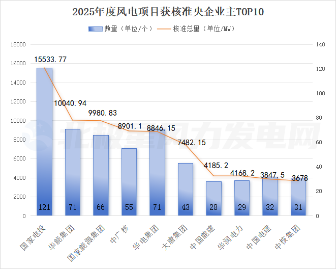 从项目获批的业主方来看,央企依旧是风电项目开发的绝对主力军。年度央企获批的风电项目总规模合计约90649.59MW,占据核准总规模的六成。领衔的开发集团包括国家电投、华能集团、国家能源集团等大型能源央企,展现了其在项目开发、资金实力和资源获取方面的综合优势。