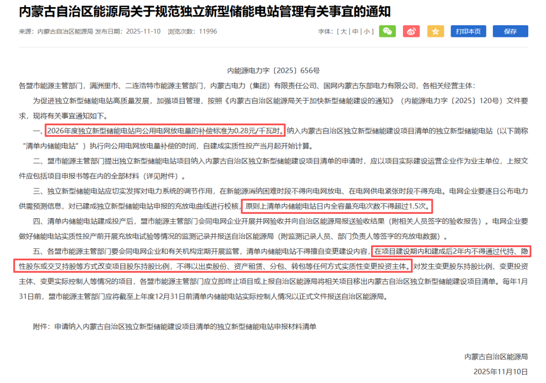 2025年底内蒙古独立新型储能项目集中并网,本质是政策窗口期的“末班车效应”与2026年政策收紧预期共同催生的市场现象。