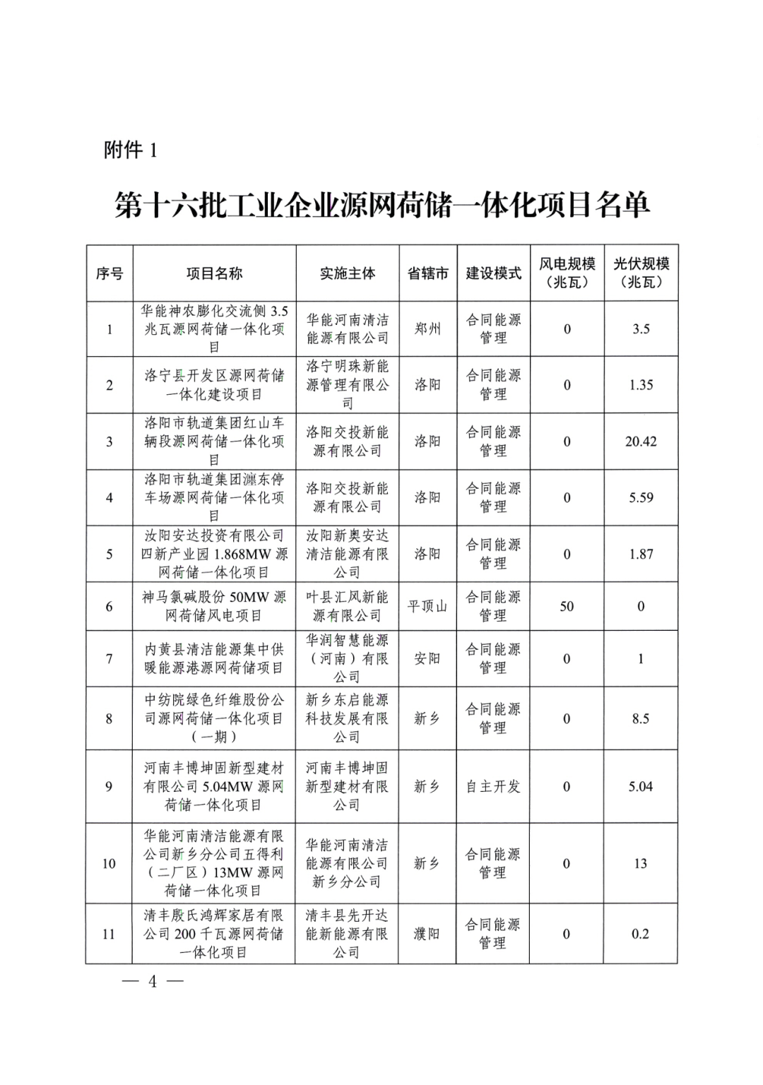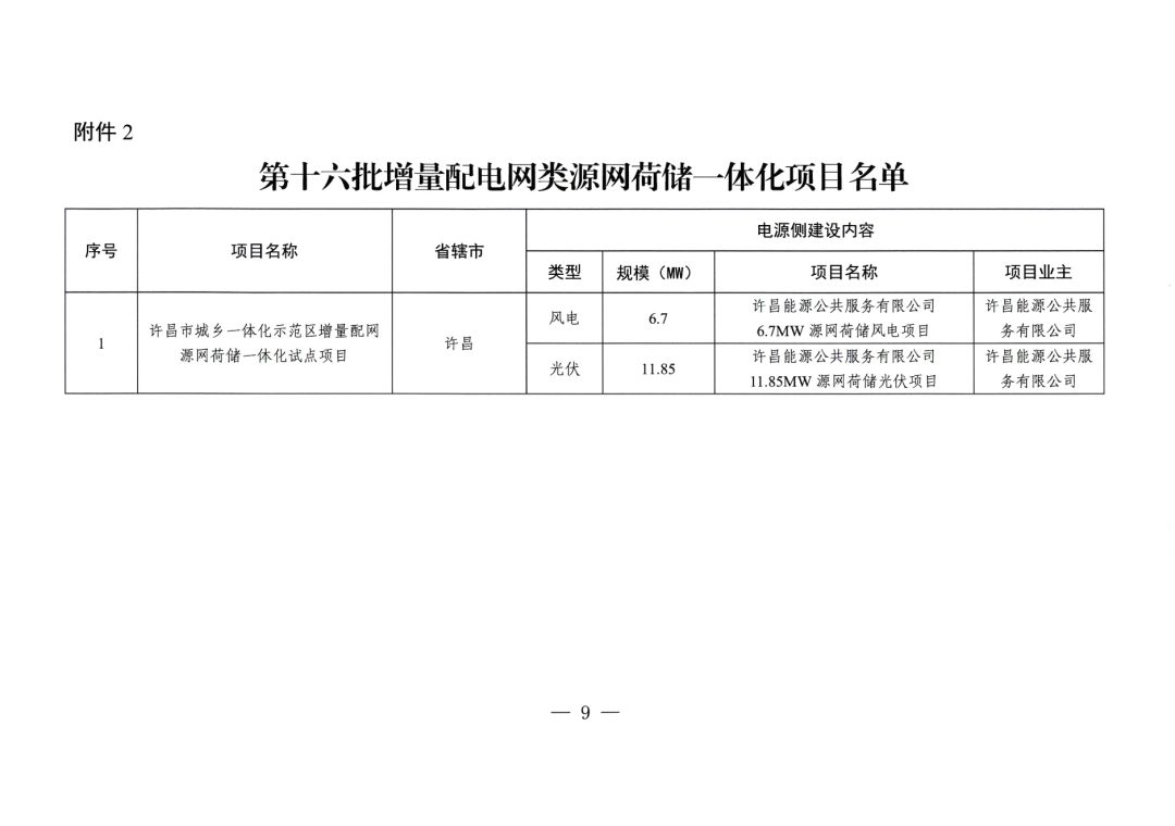 2025年12月30日,河南省发改委下发《第十六批源网荷储一体化项目的通知》,总计93个项目纳入,规模656.7MW。