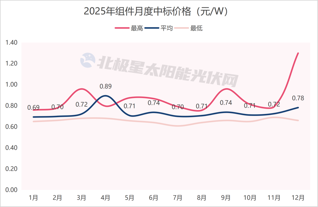 从中标价格来看,六部门联合整治低价无序竞争的举措已初见成效,此前行业“低价通杀”的乱象得到有效遏制,但2025年组件价格整体仍徘徊在成本线附近,企业盈利状况未得到实质性改善。