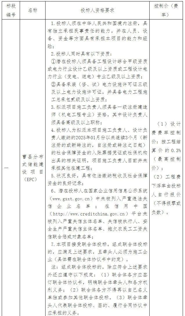 6、招标范围:2025年曹县分布式储能建设项目(EPC)的工程设计、施工等。(具体详见招标文件);