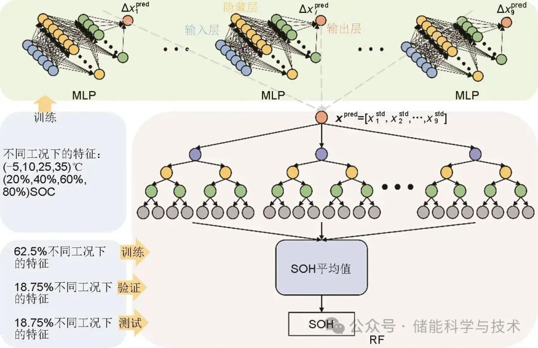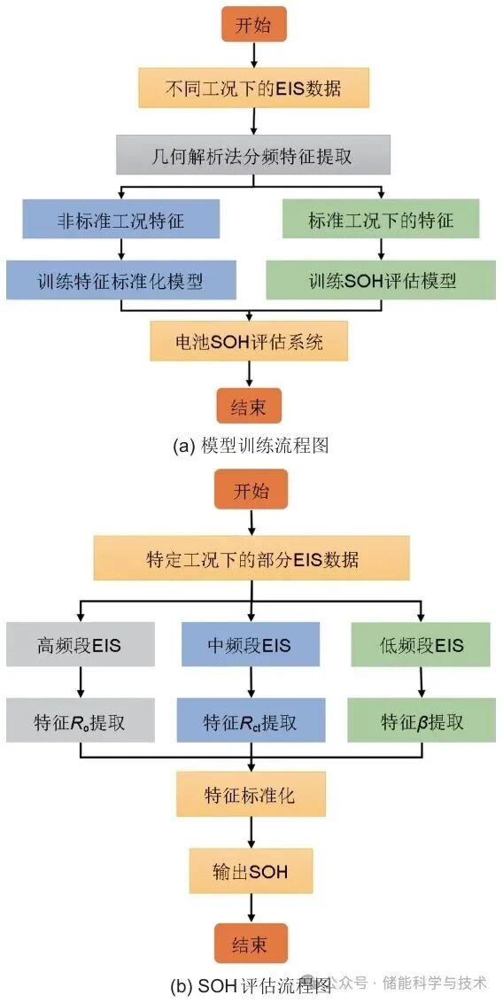 本文亮点:1.提出了一种解析交流阻抗谱获取特征参数的几何方法 2.构建基于MLP的特征标准化模型和基于RF模型的电池SOH评估模型的电池SOH评估系统 3.针对不同频率范围的EIS数据选择合适的特征参数评估SOH
