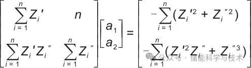 遵循最小二乘法,所有阻抗复平面的点到拟合圆的距离平方和最小的准则,将求解非线性回归问题转化为求解线性方程组问题,避免优化参数陷入局部最小值的窘况。基于极值原理建立法方程: