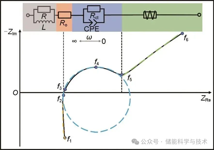 如图3所示,将阻抗谱在频域尺度下划分为多个子区间,f1、f2、f3、f4、f5、f6分别为高频、中频、低频阶段的起始和终止采样频率。