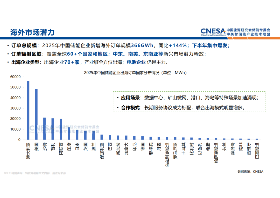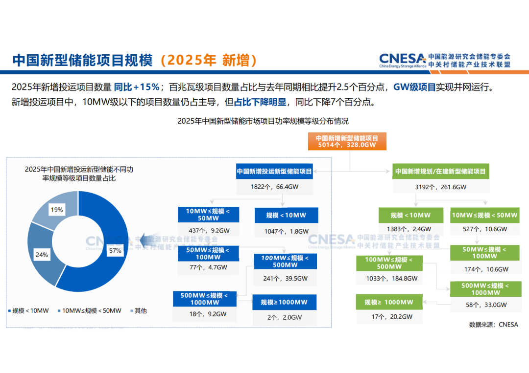 2025年中国新型储能新增投运66.43GW/189.48GWh,功率规模和能量规模同比+52%/+73%。从区域分布看,Top10省份装机规模均超5GWh,合计装机占比接近90%;西部省份全面领跑,内蒙古能量和功率装机规模双第一,超越加州成为全球第一的省份;云南首次进入Top10。