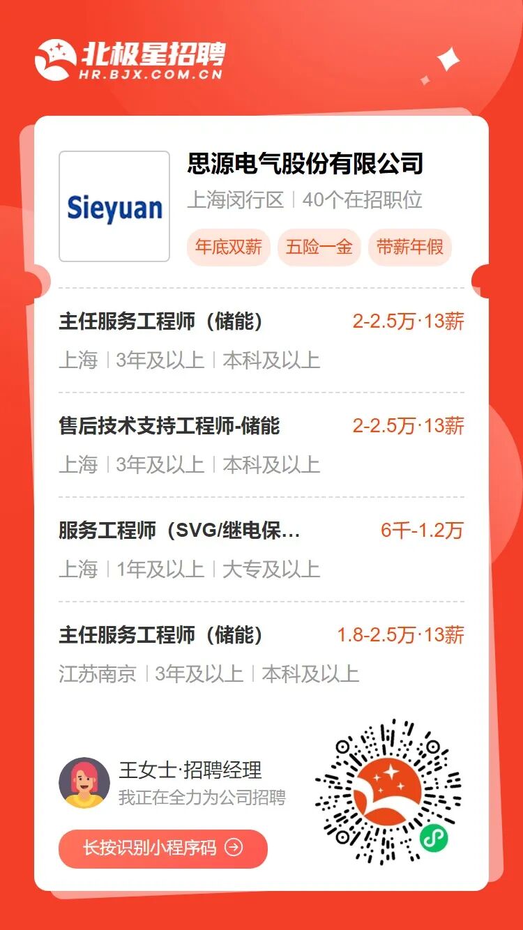 原标题:储能招聘丨思源电气多个储能岗位热招中!