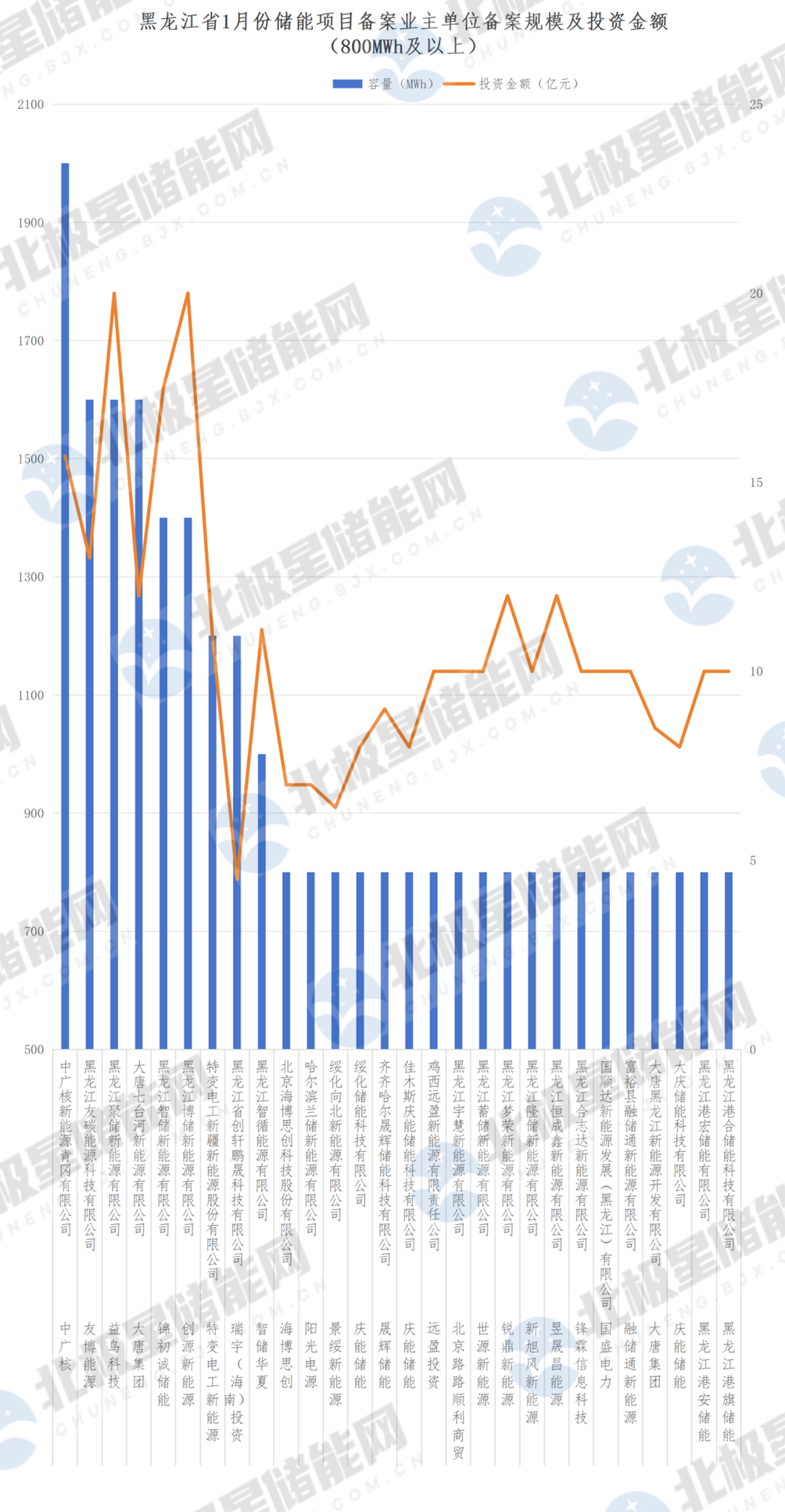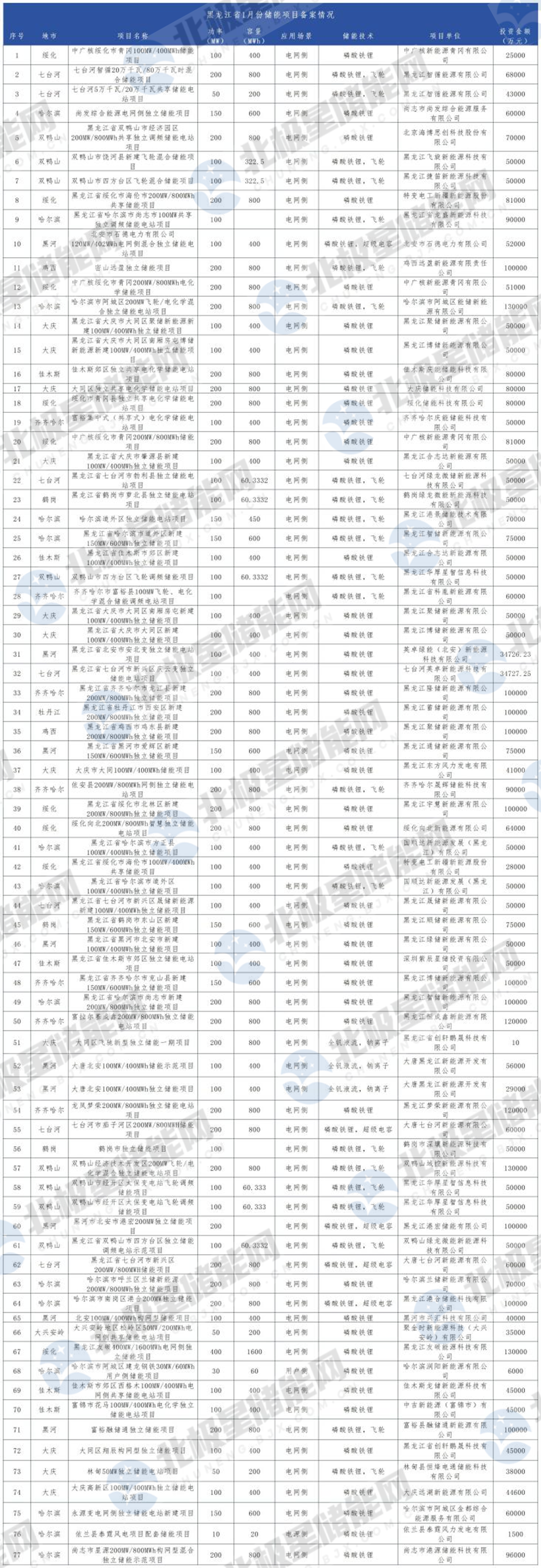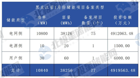 黑龙江省1月份储能项目备案情况如下: