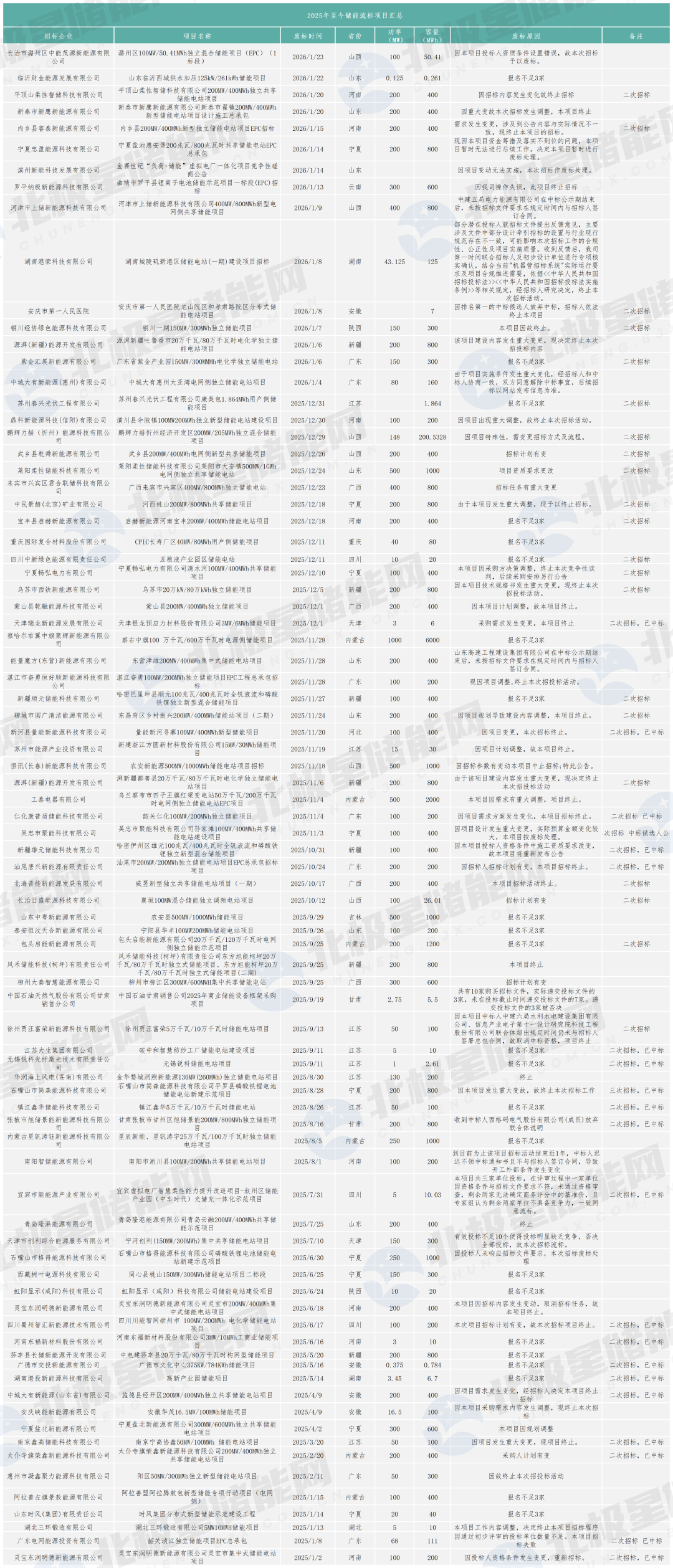 两大项目接连否决所有投标,既体现出当前储能项目招标在投标数量、技术方案审核上的硬性门槛持续提高,也印证了储能项目推进正脱离单纯的形式化流程,转向对投标主体匹配度、技术方案合规性的实质性考核。这一现象不仅是招标方对项目质量与落地效果的严格把控,更成为储能行业的市场化筛选信号,倒逼参与企业提升自身资质、打磨技术方案,适配储能行业高质量发展的要求。