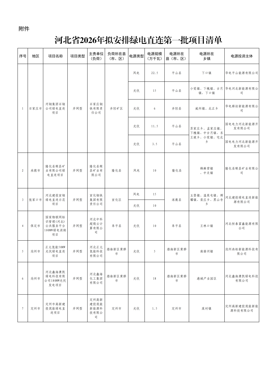附件:河北省2026年拟安排绿电直连第一批项目清单