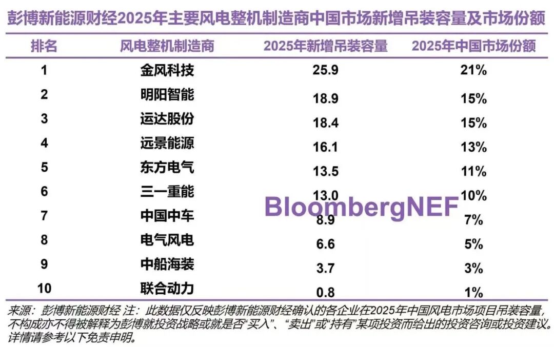 2月13日,彭博新能源财经发布2025年中国风电整机制造商新增吊装容量报告。数据显示,2025年中国风电新增吊装容量达到创纪录的126GW,同比增长47%。在这一历史性增长浪潮中,明阳智能以超18.9GW的吊装容量强势跃居中国风电整机商总体排名第二,展现出强劲的市场竞争力和规模化交付能力。其中,海上风电新增装机超1.3GW,位列第二;陆上风电领域稳居第三,多业务板块实现均衡突破。