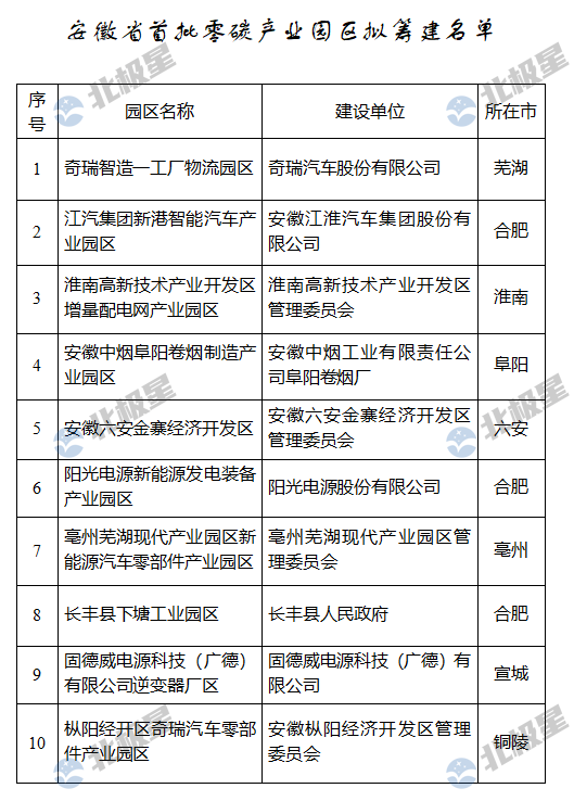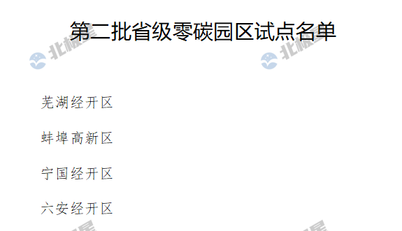 2024年11月,安徽省首批零碳产业园区拟筹建名单公示,10个产业园入围;2025年12月,第二批省级零碳园区试点名单公示,共有4个开发区项目。