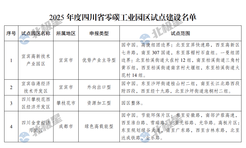 2025年7月18日,四川省经济和信息化厅、四川省生态环境厅公布2025年度四川省零碳工业园区试点建设名单,宜宾高新技术产业园区、宜宾临港经济技术开发区、四川攀枝花西区经济开发区、四川金堂经济开发区4家园区入选首批试点,将通过3年左右的建设期打造成为零碳工业园区。