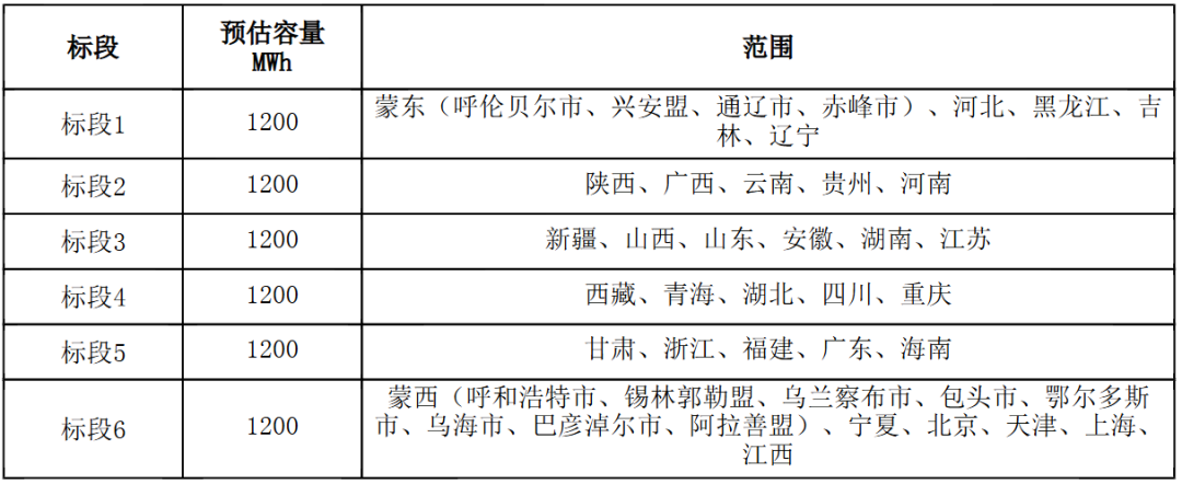 据悉,2025年12月12日,中广核新能源启动2026年度储能系统框采,此次框采共分为六个标段,每个标段覆盖不同区域、预估采购容量1.2GWh,合计总采购需7.2GWh。框架合同的有效期自2026年1月至2027年1月。