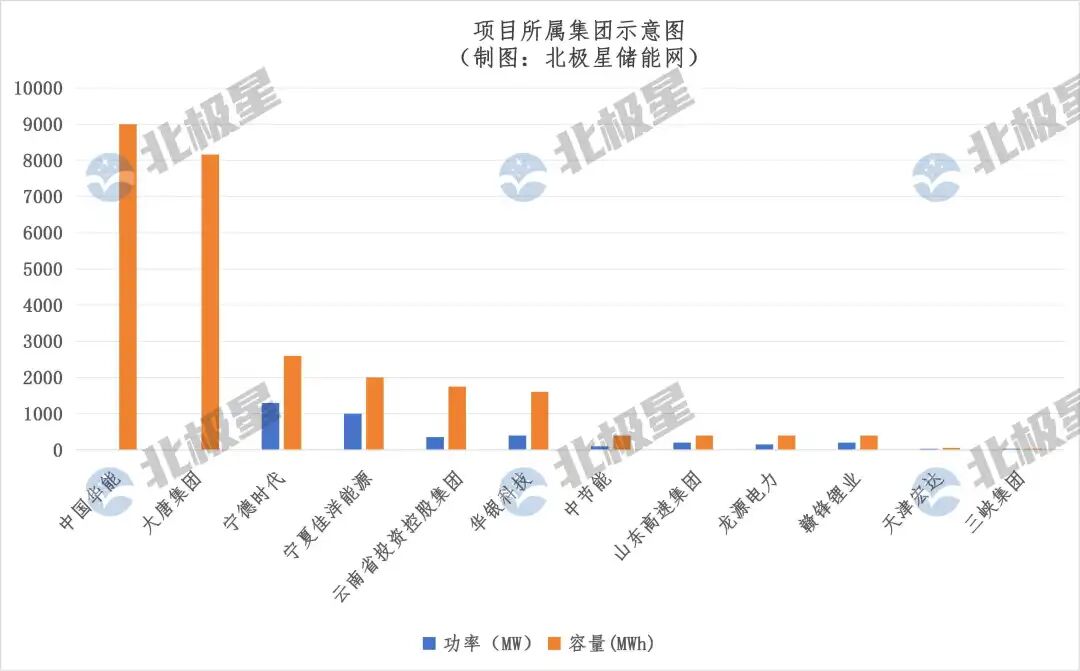 从项目所属集团来看,参与投建项目的企业共有12家,央国企包括中国华能、大唐集团、龙源电力、中节能、三峡集团、云南省投资控股集团、山东高速集团、天津宏达;民营企业包括宁德时代、宁夏佳洋能源、华银科技、赣锋锂业。