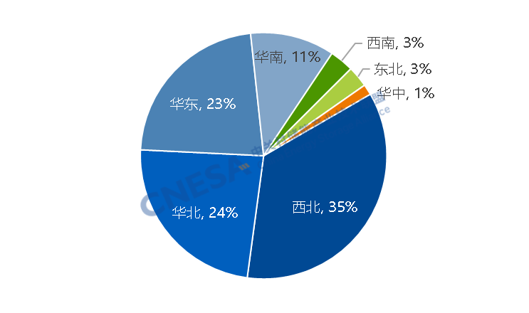 2、西北地区新增装机规模占比超35%,新疆新增装机规模最大。