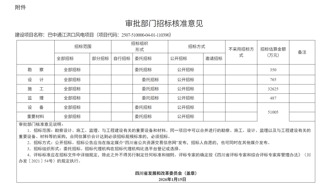 巴中通江洪口风电项目(项目代码:2507-510000-04-01-110390)。