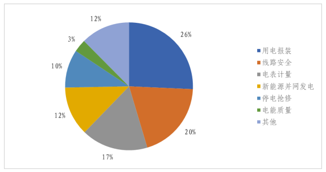 2026年1月,办结投诉事项2110件(含上月结转),热线平台接收申诉事项249件,投诉申诉率11.80%,从申诉内容看,主要集中在用电报装、线路安全、电表计量等方面(详见图2)。