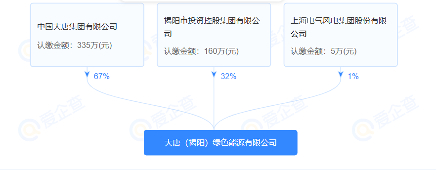 股权穿透显示,该公司由中国大唐集团有限公司、揭阳市投资控股集团有限公司、电气风电共同持股。