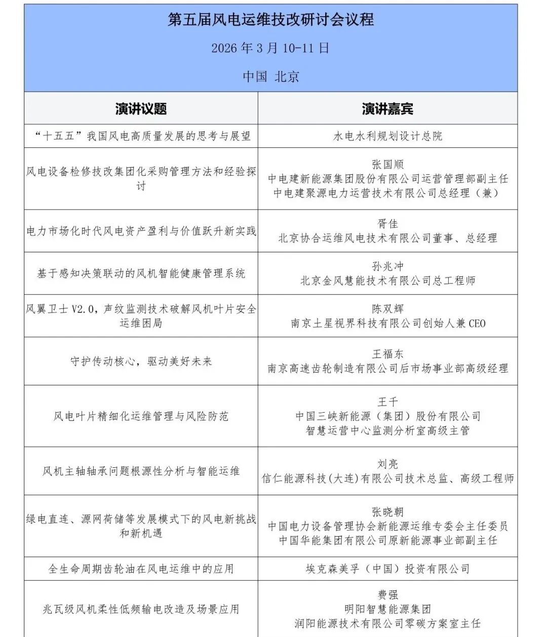 为破解行业发展难题,搭建产业协同创新平台,北极星电力网、北极星风力发电网联合中国电力设备管理协会新能源运维专委会,拟于2026年3月10-11日在北京举办第五届风电运维技改研讨会。会议将围绕产业发展核心需求,聚焦政策市场、技术创新、效能提升、资产管理、市场化交易等关键领域展开深度研讨,助推高效、安全、智能的运维技改市场升级,推动风电产业在“十五五”期间实现高质量跃升。
