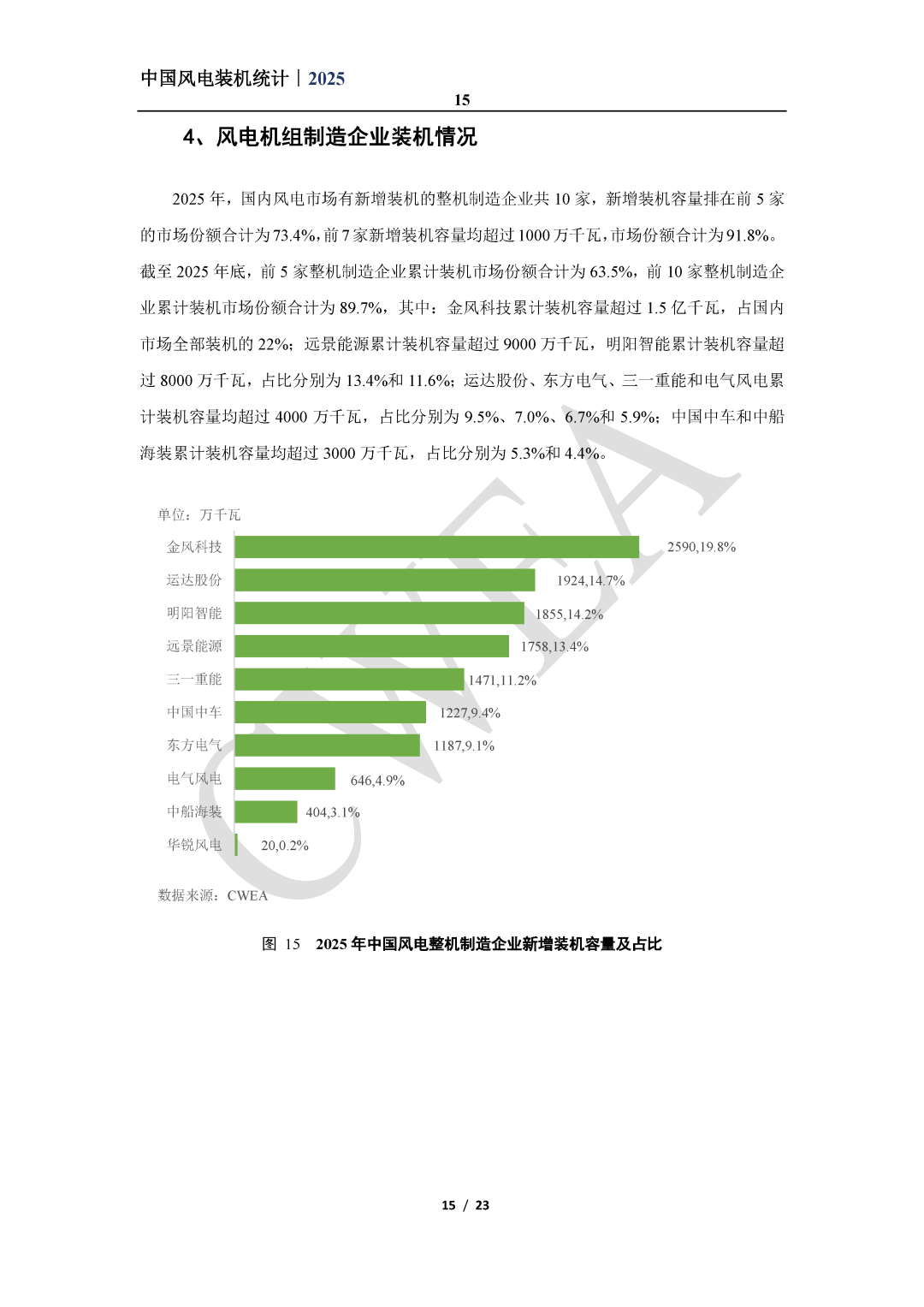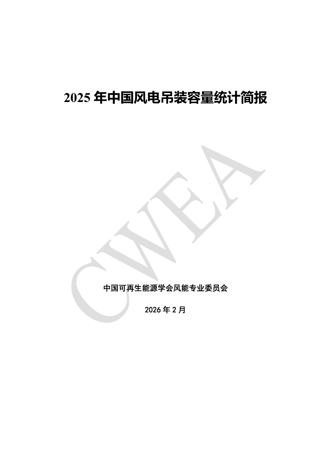 中国可再生能源学会风能专业委员会发布《2025年中国风电吊装容量统计简报》(完整版)。