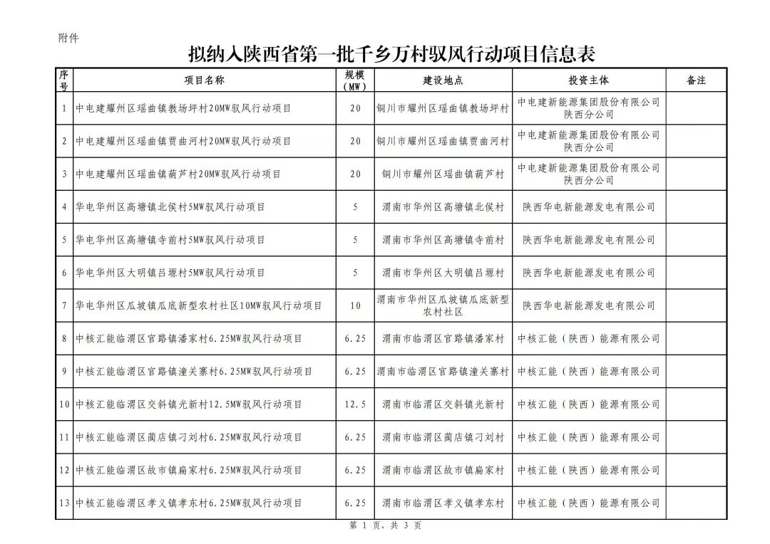 关于陕西省第一批千乡万村驭风行动试点项目的公示