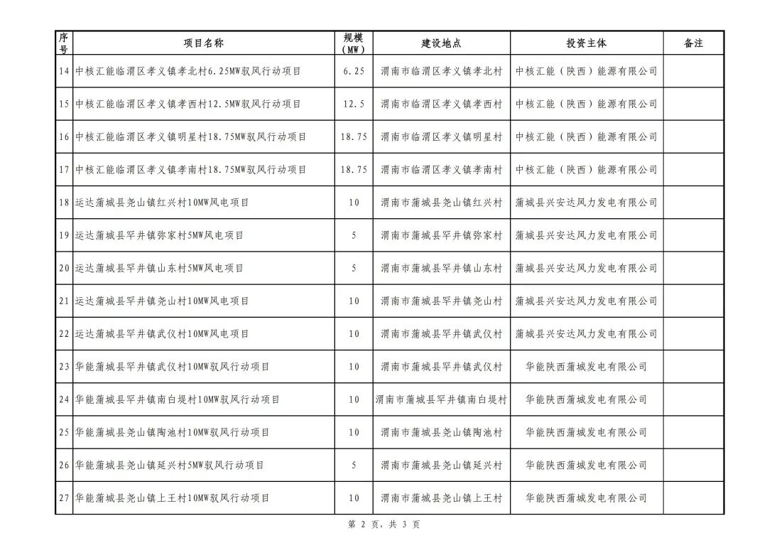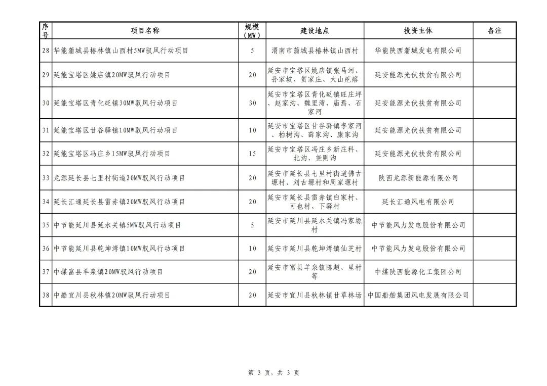 北极星风力发电网获悉,3月2日,陕西省第一批千乡万村驭风行动试点项目的公示,共38个项目,规模合计445MW。