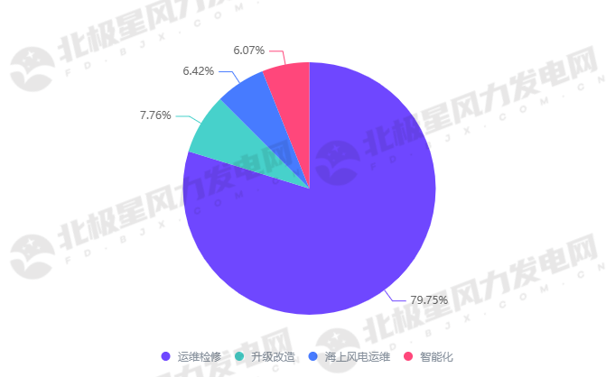 其中,保障设备正常运行的“运维检修”、以发电量提升为目标的“技改升级”,这两大类招采占比超过87%。136号文后,市场化的电价竞争倒逼风电从设备质量到运维服务全面升级,作为决定风电收益的价值海绵,后服务的能力和水平正在被重新定义。
