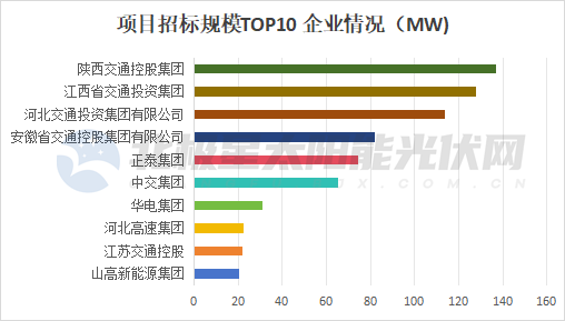 在2025年招标市场中,陕西省交通控股集团、江西省交通投资集团、河北交通投资集团有限公司是主力军,招标规模均超113MW;安徽省交通控股集团有限公司、正泰集团、中交集团的招标规模也不容小觑,均突破65MW。