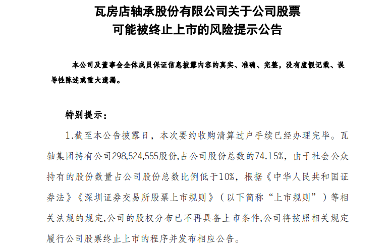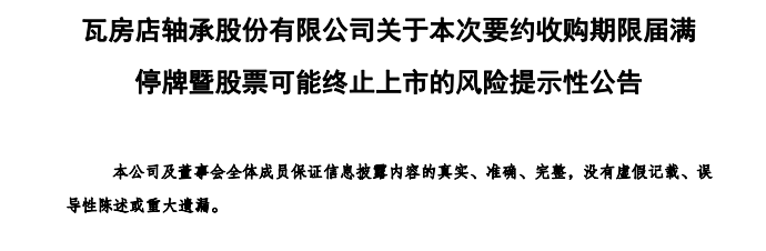 此前公司已自2026年3月2日起停牌,收购结果公告后将继续停牌直至退市完成,退市后,瓦轴集团将按要约价格收购余股股东拟出售的剩余股份,提供最后的退出渠道。