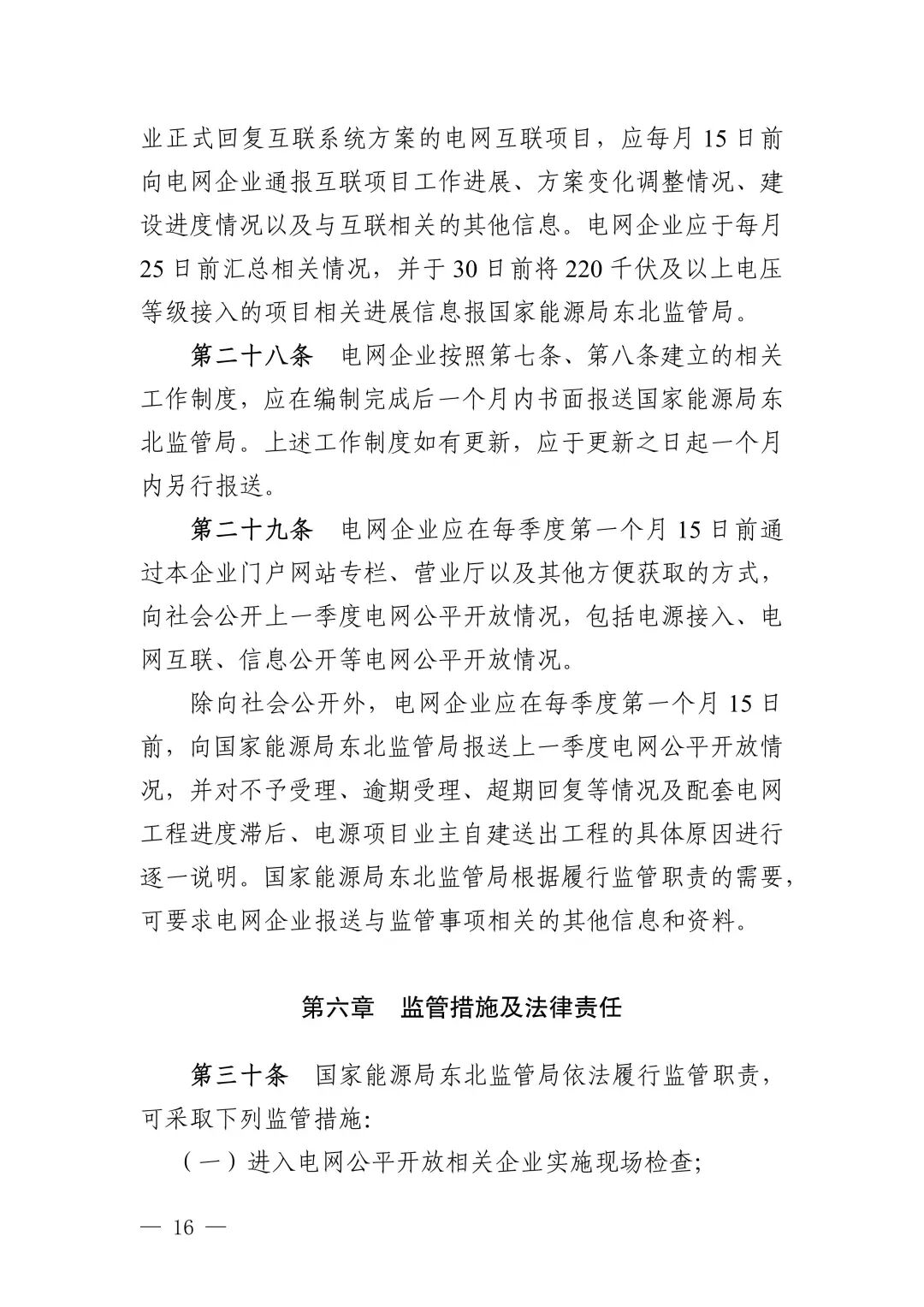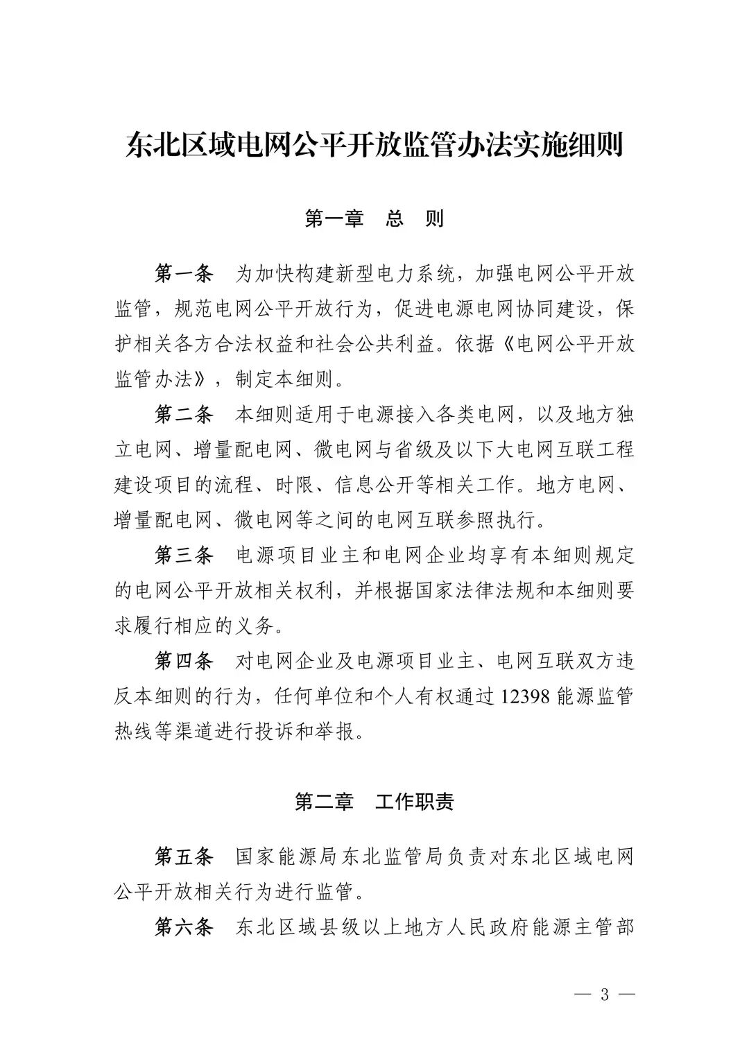 关于印发《东北区域电网公平开放监管办法实施细则》的通知