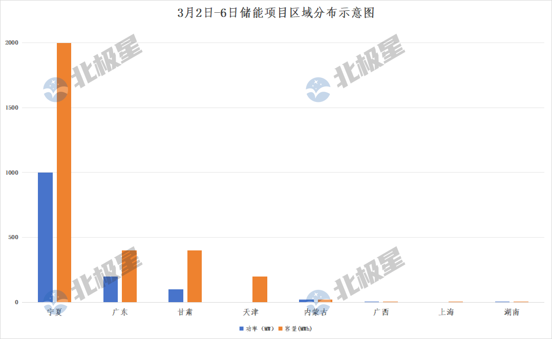 从项目分布区域来看,宁夏以1GW/2GWh的储能规模领跑。